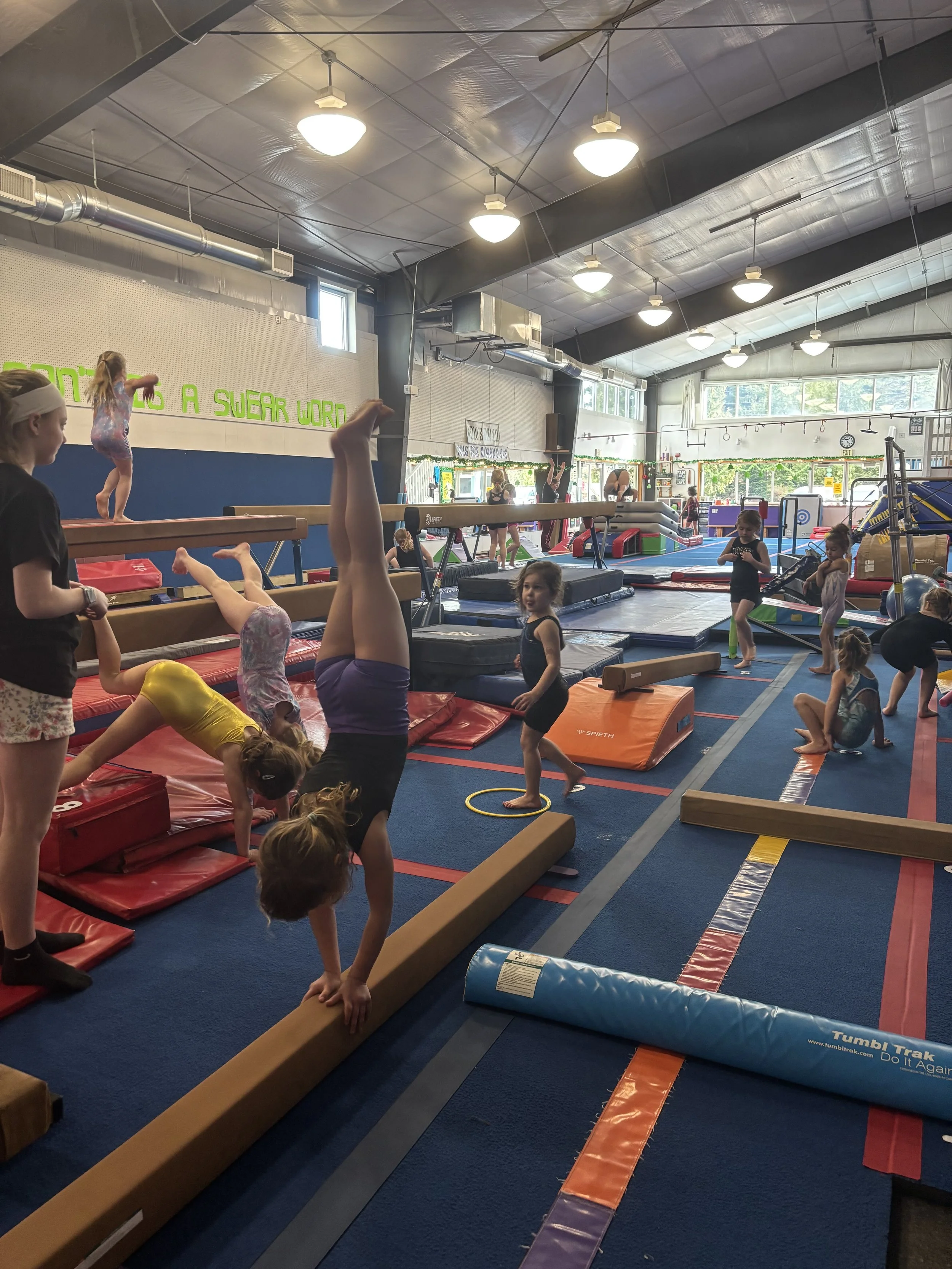 Beyond doing gymnastics skills, our program builds essential motor skills that are important not just for gymnastics, but for all sports and everyday life. Students develop strength, balance, coordination, flexibility, agility, body awareness, and spatial control, all foundational skills that support success in activities like soccer, basketball, dance, swimming, and even simple daily movements like running, jumping, and climbing.